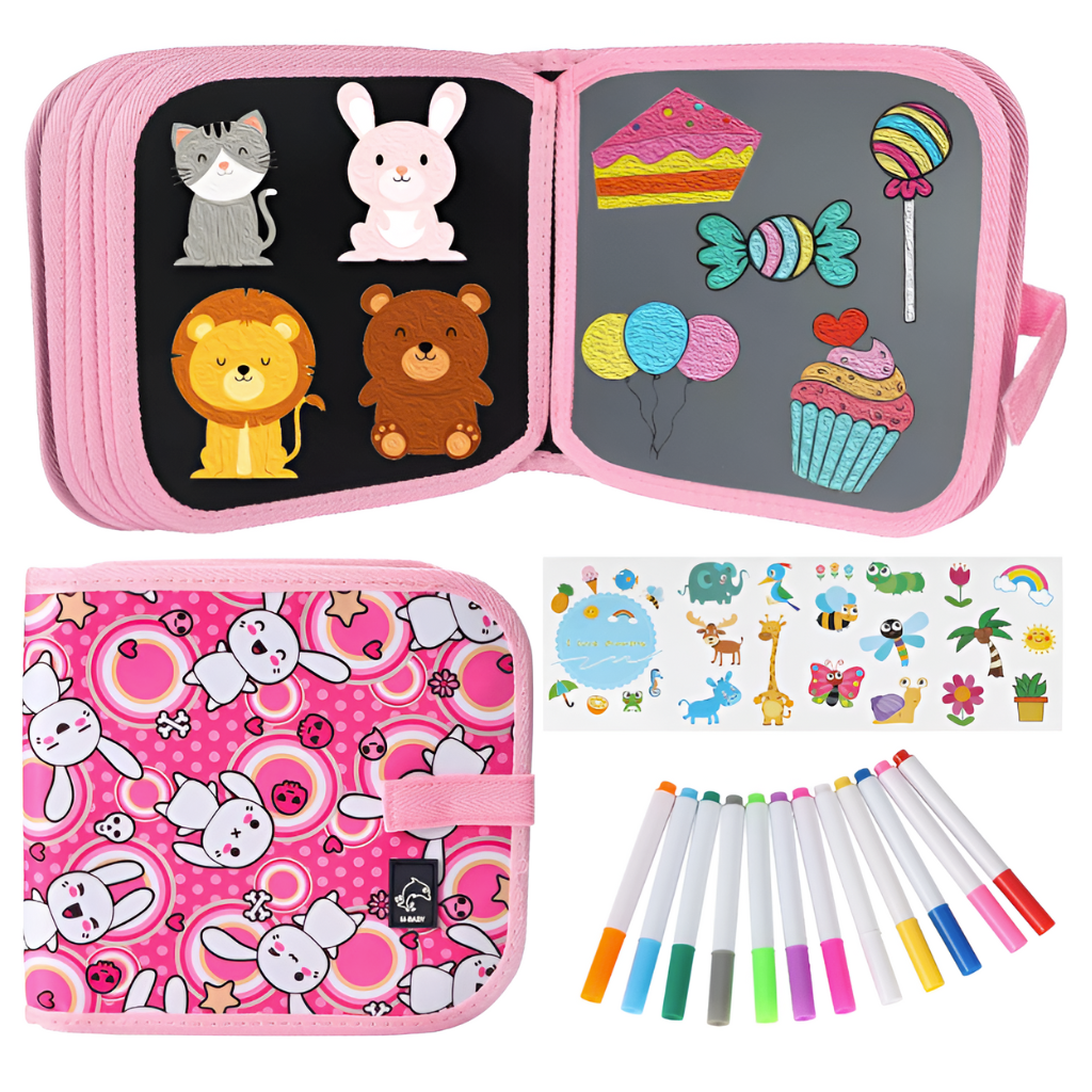 🎨 14 Erasable Drawing Pages – Includes transparent tracing pages and 12 watercolor pens to spark creativity and imagination.