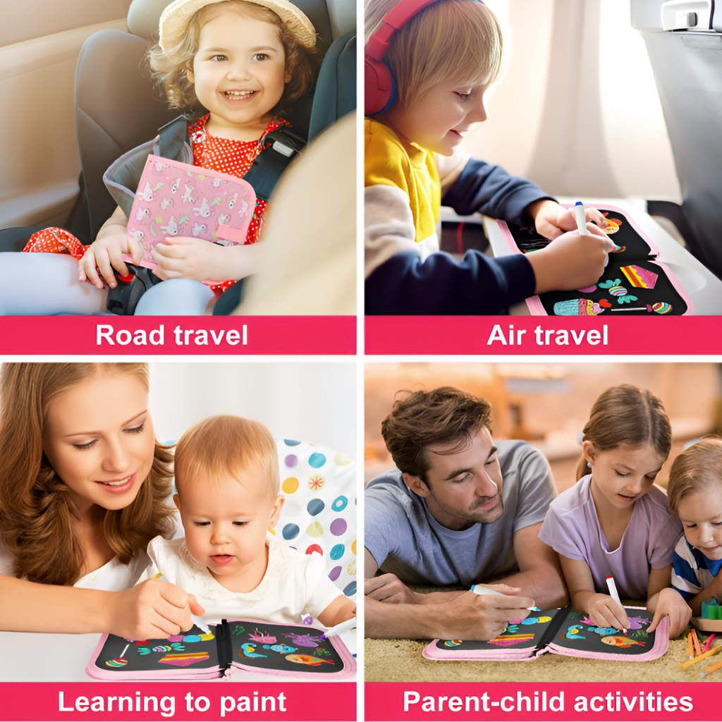 "This is a must have for families who travel frequently. My daughter loves to draw. But when you're on the go, you can't have tons of paper and markers. This set is great because you can throw it in a backpack and go without needing anything else!"